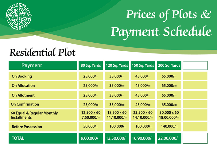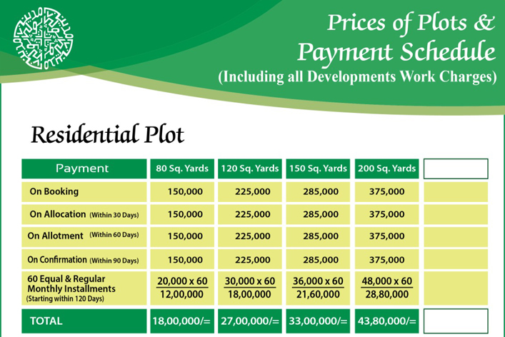 Residential Plots Prices & Payment Plan for Overseas Pakistanis