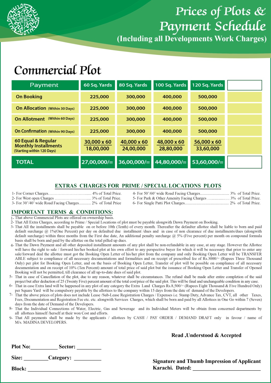 Commercial Plots Prices & Payment Plan for Overseas Pakistanis